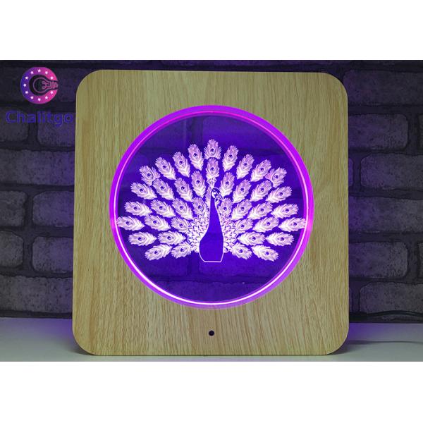 2018 new peafowl acrylic lamp plastic wooden grain 3D visual light smart touch switch various colors